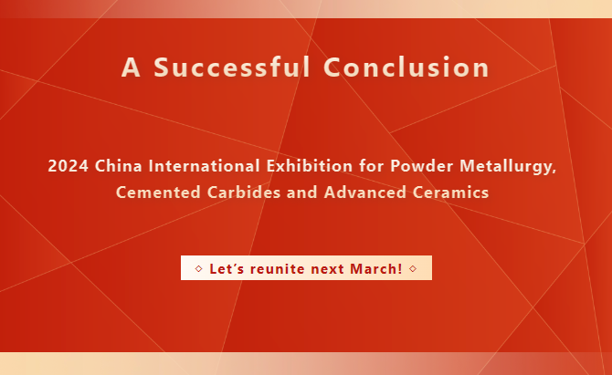 Organized by Uniris Exhibition Shanghai Co., Ltd., the 2024 China International Exhibition for Powder Metallurgy, Cemented Carbides and Advanced Ceramics successfully concluded in a lively on-site atmosphere and non-stop praise from exhibitors and visitors on March 8!